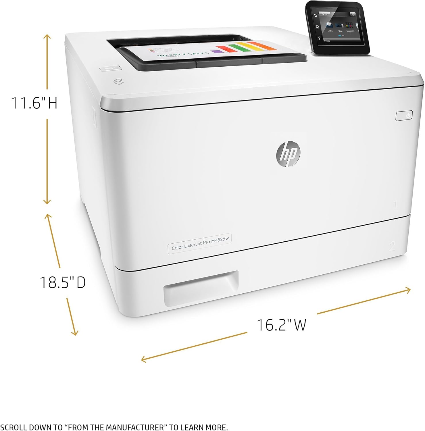 Certified Refurbish Brand - HP Color LaserJet Pro M452dw Laser Printer - Print Speed: 28 ppm / Print Resolution: 600 x 600 dpi / Automatic Duplexing / Input Capacity: 300 Sheets / Maximum Print Size: 8.5 x 14" / Minimum Print Size: 3 x 5" / USB 2.0, Ethernet, and Wi-Fi with NFC ; Includes New Generic Print Consumables : (Toner Cartridge: CF410A / CF411A / CF412A / CF413A) - 90 Day Depot Warranty ; RECERTIFED NOTES: Professionally Refurbished and Fully cleaned inside and out Replacing any Parts showing signs of wear ; Product may have cosmetic discoloration. ; We replace all parts and Print Consumables to ensure that you have no issues with quality or paper jams. We test each machine thoroughly and replace the Print Consumables that are in need of replacement such as pickup rollers, separation roller, mp pickup roller, separation pads, transfer roller, fuser film, pressure roller and then field test all the mechanics and electronics. We then clean the unit internally and externally and then professionally pack the unit and ship it to you. ; Drivers and/or User Guides Are Available from Manufacturer Website But Not Included ; Ships with Power and Network cables (Where Applicable). ; Print Consumables are Guaranteed for 30 days ; Printer Hardware has 90 Day Depot Warranty ; Exclusively Sold and Refurbished Only by AIM